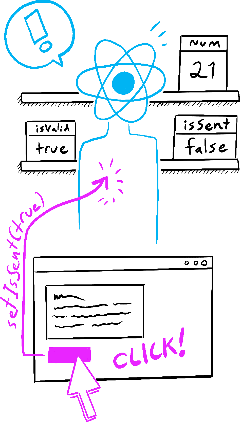 Neste exemplo, quando você pressiona “enviar”, setIsSent(true) diz ao React para renderizar novamente a interface: